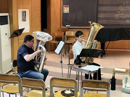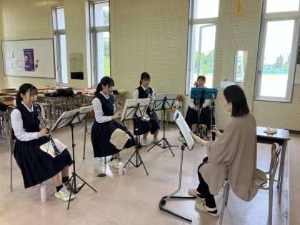 吹奏楽部は、本日クラリネットとチューバの先生に来ていただき、指導を受けています。貴重なアドバイスにしっかり耳を傾けています。