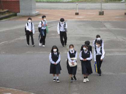 昨日からの雨も上がり、今朝は曇り空の中での登校となりました。