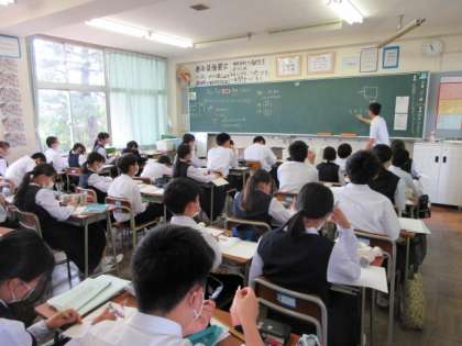 本日の3限目の授業の様子です。 教科は数学で平方cmの計算について学習しました。