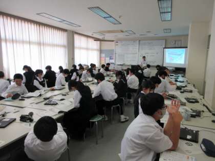 本日の3限目の授業の様子です。 教科は技術でデータ容量の単位について学習しました。