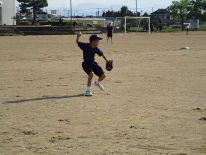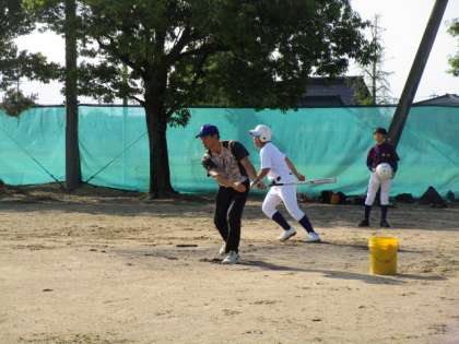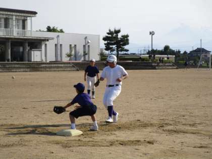 野球部は、顧問の指導の下、守備の練習をしています。