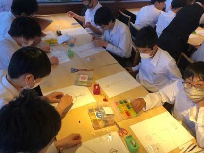 5組嵐山体験学習 紐を組む作業が難しいです。