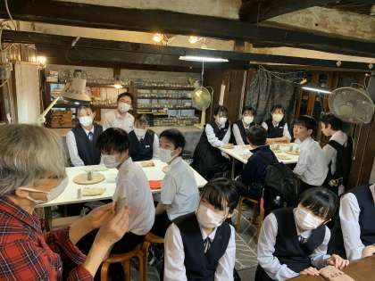 1組 にぎり猫体験 説明を聞いています。
