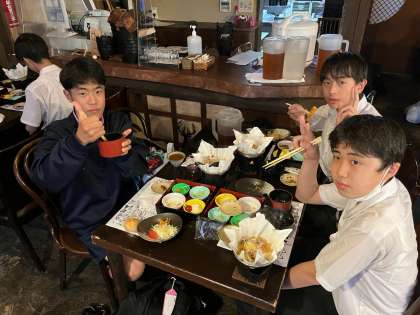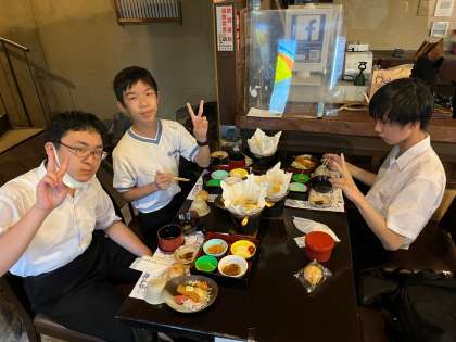 1組の奈良の食事会場での様子です。 温かい食事に大満足です!