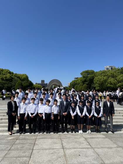 修学旅行中、広島平和記念公園と宿泊先のホテルでクラス写真を撮影しました。 1組のクラス写真です。