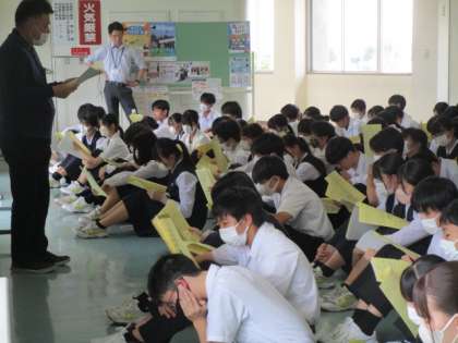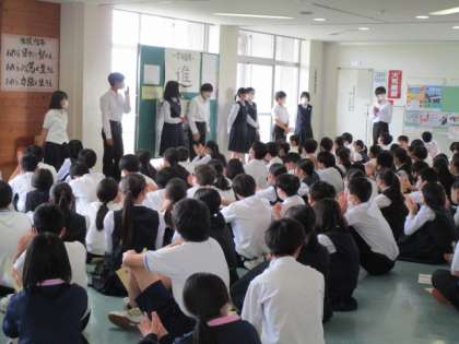 3学年は、今日の集会では修学旅行実行委員への感謝の集いと、今後の行事やオープンハイスクールについて確認する集会を行いました。