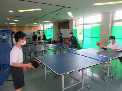 卓球部はコモンスペースの狭いエリアで、頑張って練習をしていました。
