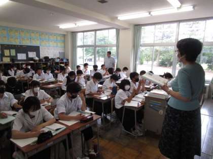 午後も元気いっぱい、授業に臨んでいます。 写真上段 1−3 保健体育 写真下段 1−4 数学