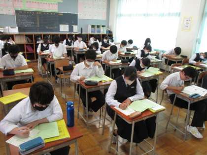 6月8日(木) 3年 授業風景 公開日 2023/06/08 更新日 2023/06/08 3学年 3年生はアンケートQUをした後、引き続き修学旅行新聞を作成します。 写真上段 3−1 写真下段 3−2