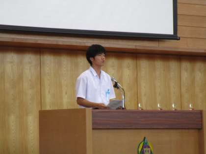 6月9日(金) 社会を明るくする運動 公開日 2023/06/09 更新日 2023/06/09 news 本校からは3年生3名の生徒が発表し、堂々と主張を述べました。聞く人たちに訴えかけるような、心に届く発表でした。 聞いている生徒たちにとっても、社会を明るくするための視点について、それぞれが考えをもつよい機会となりました。
