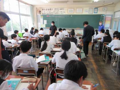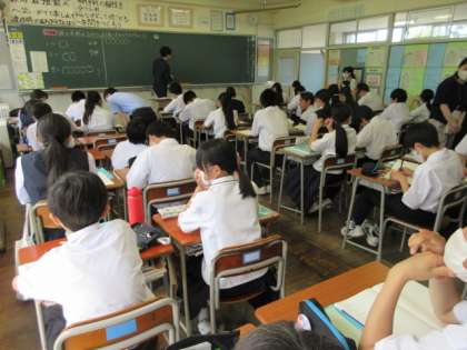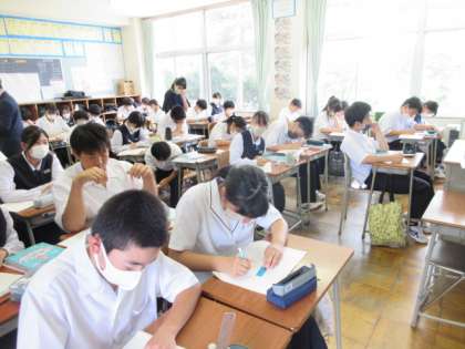 教育実習生の研究授業だったので、たくさんの教員が見に来ていましたが、生徒たちはほどよい緊張感のもと集中して授業に臨んでいました。