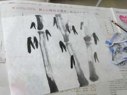 2年4組美術の「水墨画」の練習段階の作品です。