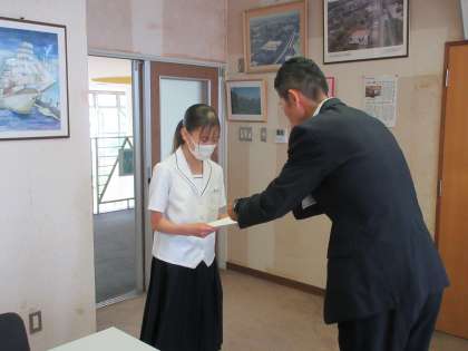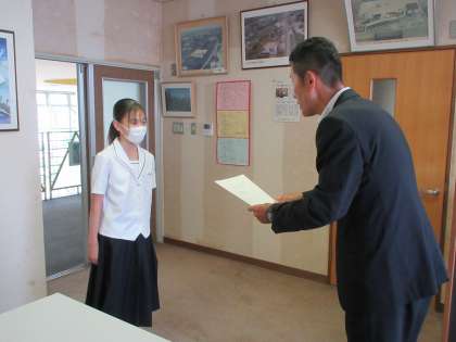 6月15日(木) TOYAMAアスリートマルチサポート事業指定選手証授与式 公開日 2023/06/15 更新日 2023/06/15 1学年 本日昼休み、本校から「TOYAMAアスリートマルチサポート事業」の水泳/アーティスティックスイミング部門の指定選手証授与式を校長室で行いました。 富山県を代表する水泳/アーティスティックスイミング部門の選手として頑張ってください。 応援しています!!