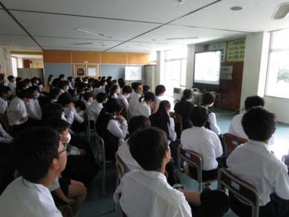 1年生はコモンスペースでビデオを鑑賞しています。