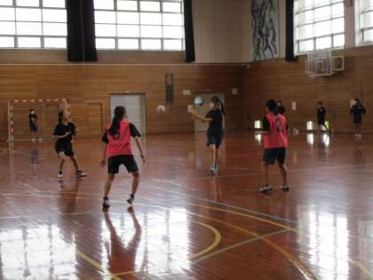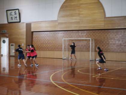 ハンドボール部は、明日の試合に向けて気合いを入れて練習しています。