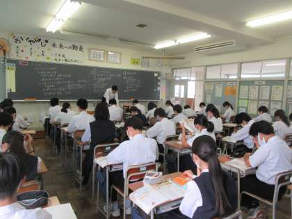 2年生の今日の授業の様子です。 写真上段 2−1 理科 写真下段 2−2 社会