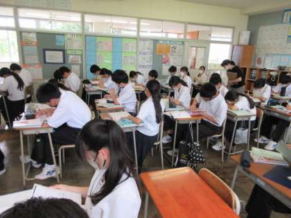 本日の6限目の授業の様子です。 教科は数学で正負の数の計算のまとめ学習をしました。