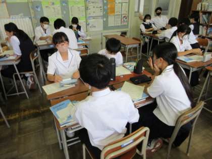 教科は国語で自立語と付属語についてグループ学習をしました。