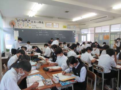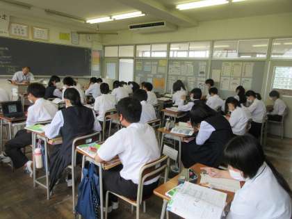 2年生の今日の授業の様子です。 写真上段 2−1 理科 写真下段 2−2 保健体育