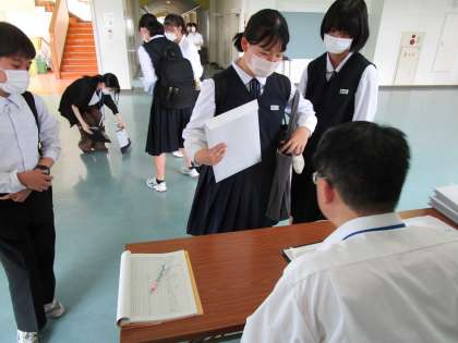 6月22日(木) 2年 事前訪問1日目 公開日 2023/06/22 更新日 2023/06/22 2学年 2年生は、本日午後から「社会に学ぶ『14歳の挑戦』」の事業所へ事前訪問に行きました。 コモンスペースで事業所ごとに集まり、資料を受け取ったり、最終点検を受けたりしました。 明日も多くの生徒が事前訪問に行きます。 きちんとした対応を心掛けてくださいね。