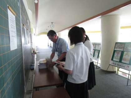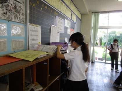 期末考査1日目が終了しました。教室や職員室前では、係の生徒が提出物をチェックして集めています。各自で確認して、提出期限に出しましょう!