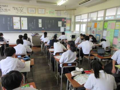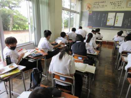 本日の5限目の授業の様子です。 教室でテストに向けて集中して自学自習をしました。