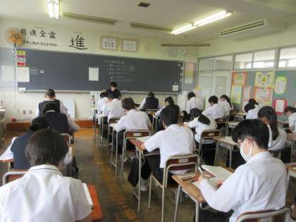 画像は上から4組、5組の3限目の国語の期末考査の様子です。