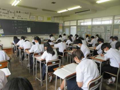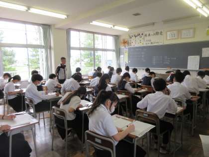 画像上から1組、2組の3限目の英語の期末考査の様子です。