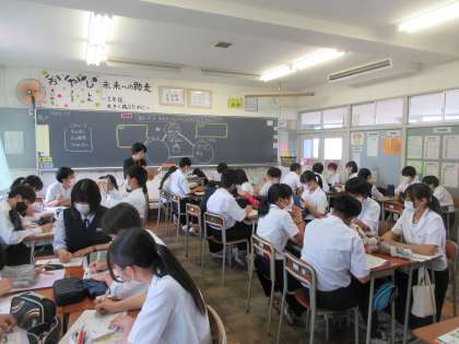 2年生の今日の授業の様子です。 写真上段 2−1 技術 写真下段 2−2 家庭科