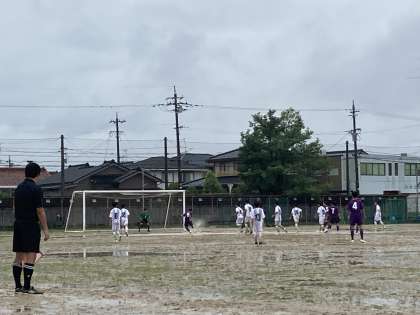 サッカー部は、あいにくの悪天候でしたが、和合中学校との試合に勝利しました。