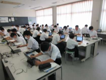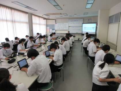 本日の3限目の授業の様子です。 教科は技術科でwordを使ったポスター作りについて学習しました。