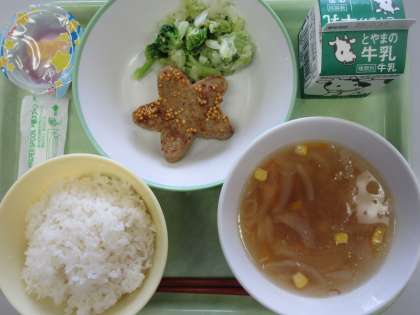 ハンバーグは星形、スープの中は、オクラが星で、はるさめが流星痕。