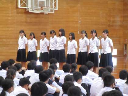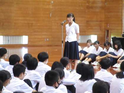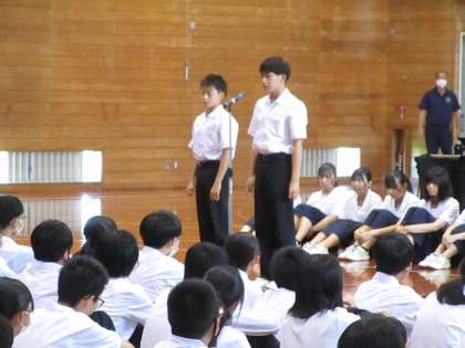 7月4日(火) 県選手権大会・県民体育大会・県吹奏楽コンクール 壮行会 公開日 2023/07/05 更新日 2023/07/05 生徒会 写真上段:新体操部 写真中段:水泳部 写真下段:ハンドボール部