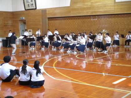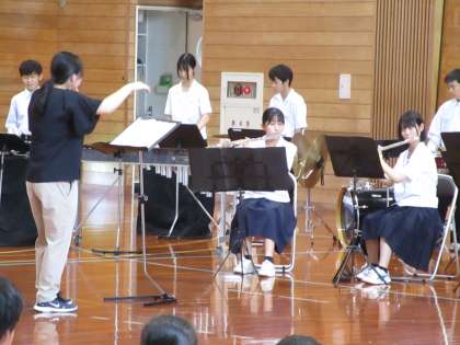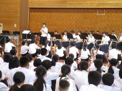 7月4日(火) 県選手権大会・県民体育大会・県吹奏楽コンクール 壮行会 公開日 2023/07/05 更新日 2023/07/05 news 吹奏楽部は、7月16日(日)に行われる県吹奏楽コンクールに向けて、部長の意気込みの後、壮行演奏会を行いました。