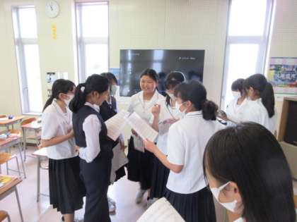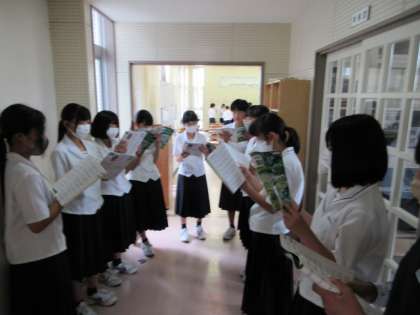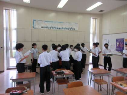 本日の3限目の授業の様子です。 音楽の授業で、合唱のパート練習を行いました。