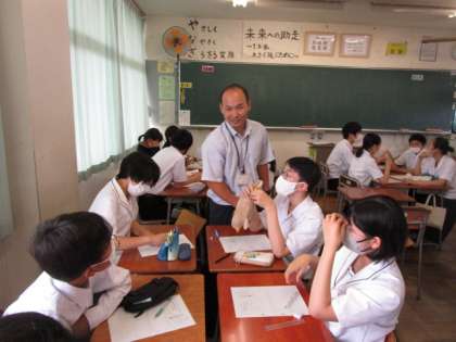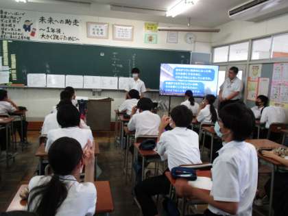 写真下段 各班ごとに話し合ったことを発表しています。(2−4)