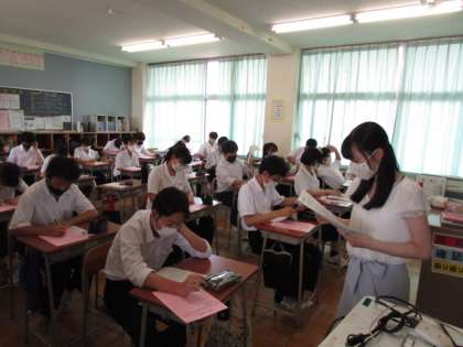 校内人権週間も4日目に入りました。自ら立てた人権宣言に対して、今日の取組はどうだったかを振り返り、カードに記入しています。