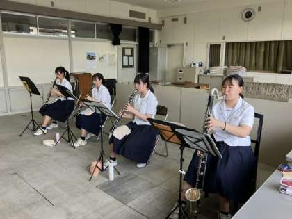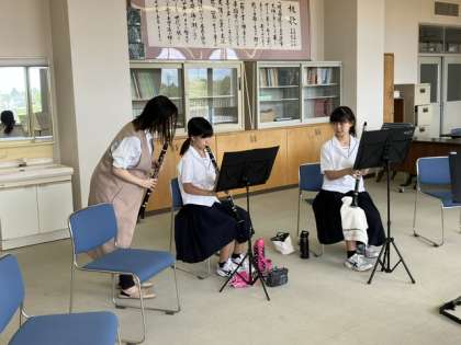7月9日(日)の部活動 吹奏楽部 公開日 2023/07/09 更新日 2023/07/09 news 吹奏楽部はいよいよ迫ってきたコンクールに向けて、講師の先生をお招きし、パート練習に励んでいます。納得がいく音が出るまで練習しています。