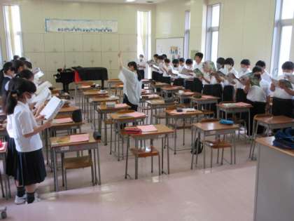 教科は音楽でパートごとに分かれて合唱をしました。