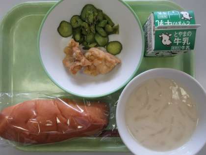 7月11日(火) 今日の給食 公開日 2023/07/11 更新日 2023/07/11 news 今日の給食のメニューは以下のとおりです。 ○コッペパン ○牛乳 ○フライドチキン ○アスパラサラダ ○ビーンズポタージュ 「フライドチキン」が、外はカラッとしており、中はジューシーで食べ応えがありました。