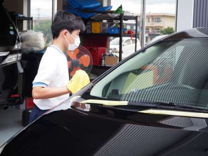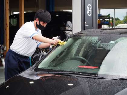 7月12日(水) 2年「社会に学ぶ『14歳の挑戦』」カーメンテナンス 公開日 2023/07/12 更新日 2023/07/12 2学年 カーメンテナンスでは、生徒が洗車をしていました。 ホースで水をかけたり、タオルで拭きあげたりして、隅々まで綺麗にしていました。