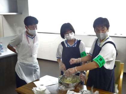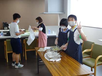 施設利用者に振る舞ういももちの調理中です。