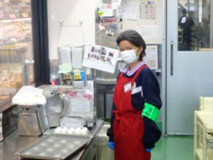 ベーカリーコーナーの調理補助や品出しをがんばっています。
