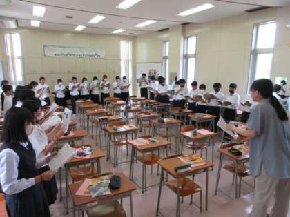 本日の3限目の授業の様子です。 教科は音楽で「君をのせて」をパート練習した後、合唱しました。