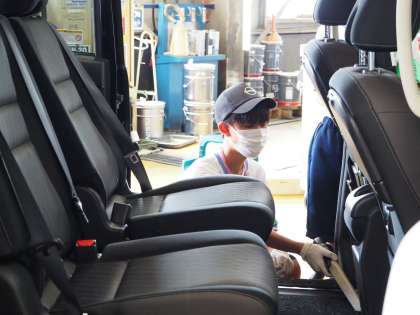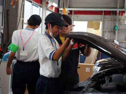 7月13日(木) 2年「社会に学ぶ『14歳の挑戦』」 日産サティオ富山東店 公開日 2023/07/13 更新日 2023/07/13 2学年 日産サティオ富山東店では、車検の作業を行っていました。 タイヤの空気圧を点検したり、車内を掃除したりなど、たくさんの工程を重ねることで、お客さんが気持ちよく車に乗れる状態になっていることを学べました。