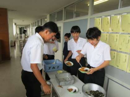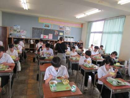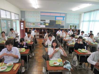 7月13日(木) 3年給食タイム 公開日 2023/07/13 更新日 2023/07/13 3学年 いただきますをするやいなや、おかわりタイムです。今日のメニューではワカサギのフリッターが人気でした。 写真上段 3年1組 写真中段 3年3組 写真下段 3年5組
