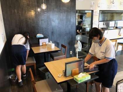 7月14日(金) 2年 「社会に学ぶ『14歳の挑戦』」 お菓子屋さん くるる、中尾清月堂、らーめん ひでお屋