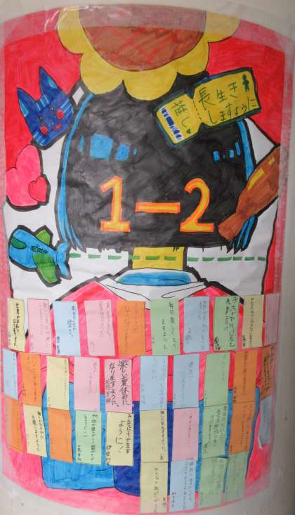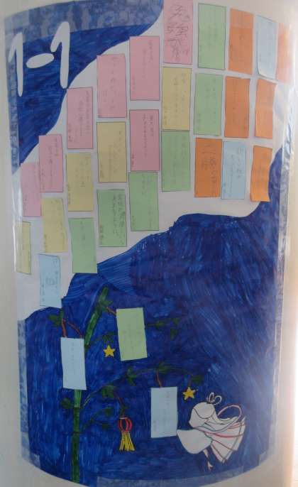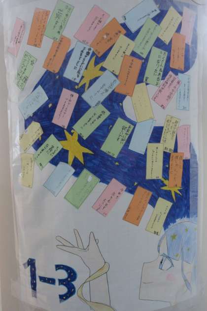 1年生の各クラスの作品です。 写真上段から1組、2組、3組です。