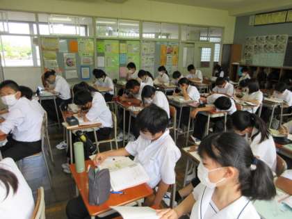 本日の1限目の授業の様子です。 教科は数学で文字式を含む不等式について学習しました。