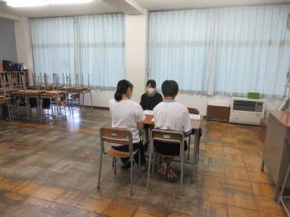 7月19日(水) 2年 三者懇談会 2日目 公開日 2023/07/19 更新日 2023/07/19 2学年 2年生の今日の三者懇談会の様子です。 2年生は「1学期の学校生活の振り返り」をするとともに、夏休みの過ごし方について確認しました。 特に、部活動では夏休みから学校の顔として活動していくことになるので、頑張ってもらいたいものです。